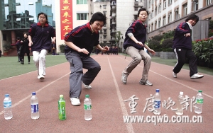 當(dāng)記者在某學(xué)?吹奖緫(yīng)青春陽(yáng)光的初三學(xué)生們,正步履蹣跚的折返于間隔僅僅25米的兩跳端線之間,或手舉兩公斤重的實(shí)心球望僅數(shù)步之遙的及格線而興嘆之時(shí),心中泛起的是一絲悲哀,以及無限的擔(dān)憂。在記者走訪的多所中學(xué)之中,不少接受采訪的體育老師都提到了一個(gè)問題:“像這樣的臨時(shí)抱佛腳,本身對(duì)于目前的中小學(xué)體育教育就是一種諷刺!