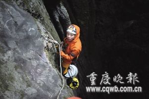 欣喜之余,隊員面臨一個艱難選擇:繼續(xù)下降,水的巨大沖擊力,不但對繩子、下降器等器械是個考驗,更是對操作者嚴峻考驗,一旦發(fā)生脫滑事故,后果不堪設想。還有,隊員衣服被淋濕有失溫危險,輕者體力急劇下降、嘔吐、暈厥,重者危及生命;不下,本次探險就此告終,因為根本無法繞道。
