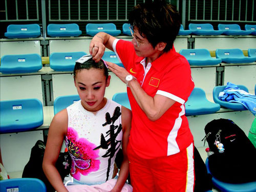 此后的一天半,張曉歡不太記得是怎么過來的。能回憶起的,就是比賽當天水立方里的燈光,全場坐滿了人,她們的三位教練:鄭嘉、汪潔、井村雅代望著這九個姑娘。
