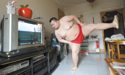 短短4年時(shí)間,體重從70公斤增加到了至少150公斤,沙坪壩區(qū)陳家灣一胖哥喜歡上了冷門的相撲運(yùn)動(dòng),并打算3年后自費(fèi)前往日本學(xué)習(xí)相撲術(shù),成為一名職業(yè)相撲手。這名“重慶相撲男”的照片一貼上網(wǎng)就成了網(wǎng)絡(luò)紅人。由于重慶的相撲選手只有他一個(gè),一直找不到合適的對(duì)手過招,無奈之下,前日晚上,這位紅人在天涯上發(fā)帖,正式邀請(qǐng)一位泰拳選手進(jìn)行一場(chǎng)另類的比賽。