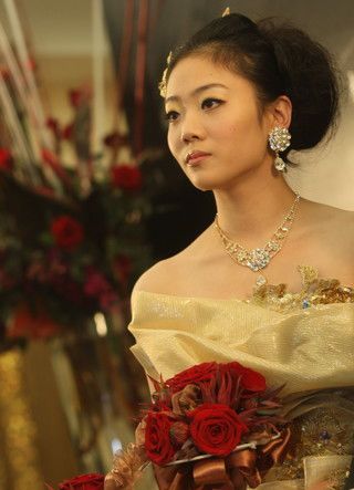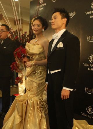 去年初冬,新詞匯“炒婚”橫空出世,而這一新詞的始作俑者便是北京奧運會體操“全能王”楊威和他的妻子、同為體操運動員的楊云!巴啤贝蠡,最吸引人眼球的,莫過于坊間盛傳價值三千萬的“黃金婚紗”。在中午十二時的婚宴上,楊云終于身穿這套“黃金婚紗”現身,使原本就俊美的新娘更加楚楚動人。