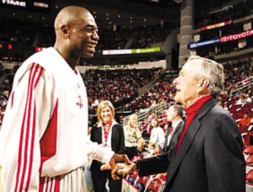 穆大叔的親密戰(zhàn)友姚明、弗朗西斯都拄著拐杖到場(chǎng)支持,見(jiàn)證這一光輝時(shí)刻!值得注意的是,就連美國(guó)前總統(tǒng)老布什也親臨現(xiàn)場(chǎng),為穆大叔送祝福。而斯特恩則親自為穆托姆博頒獎(jiǎng)。在頒獎(jiǎng)慶典上,火箭老板亞歷山大代表火箭隊(duì),向穆托姆博醫(yī)院捐贈(zèng)50萬(wàn)美元,這也是對(duì)這位令人尊敬的老將的一份獎(jiǎng)勵(lì)。