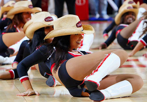 火箭拉拉女郎給我留下職業(yè)的印象還來自成功地采訪她們之后。蘇茜安排姑娘們跟我合影,她們嘻嘻哈哈地圍過來,但是在快門閃下之前的一剎那,所有人立馬都露出訓(xùn)練有素的笑容。而我在看了照片之后發(fā)現(xiàn),她們肩并肩、手挽手,一個(gè)親密合作的POSE。