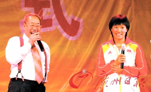 楊秀麗從沒有覺得如此緊張過,即便是去年北京奧運(yùn)會78公斤級柔道比賽中,在自己奪得金牌的過程中也沒有像現(xiàn)在這樣緊張得口干舌燥。旁邊站著的可就是都本基大師,一個為北京奧運(yùn)會開幕式引導(dǎo)牌題字并被張藝謀所推崇的大師,一個為泰山碧霞祠題寫大殿對聯(lián)的大家!艾F(xiàn)在有個新環(huán)節(jié),奧運(yùn)柔道冠軍楊秀麗希望能拜都本基大師為師學(xué)習(xí)書法!毖胍暶齑抻涝倪@句話聽得楊秀麗心驚肉跳!拔以敢馐账秊橥!”都本基老先生爽朗地答應(yīng)。
