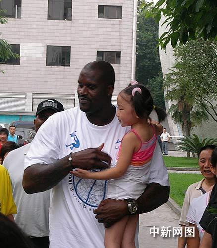 奧尼爾一下車,就受到孩子們的擁戴,現(xiàn)場一片歡呼聲和歡迎聲。已經(jīng)有了三個(gè)孩子的奧尼爾,興奮地抱起給他獻(xiàn)花的一位七歲小女孩,親了親她的臉頰。在人們的簇?fù)硐,奧尼爾參觀了汶川地震發(fā)生后修建的板房以及新校舍,詳細(xì)了解災(zāi)后孩子們的學(xué)習(xí)生活狀況。