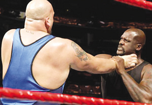當杰里科叫上體重達到226公斤的WWE冠軍成員“表演者”(保羅·懷特)時,奧尼爾叫他“胖男孩”并向他挑戰(zhàn)!氨硌菡摺本芙^了跟他比賽,“我撞翻你后,又得去撞翻勒布朗·詹姆斯,我可不想大衛(wèi)·斯特恩和整個NBA都來追殺我!