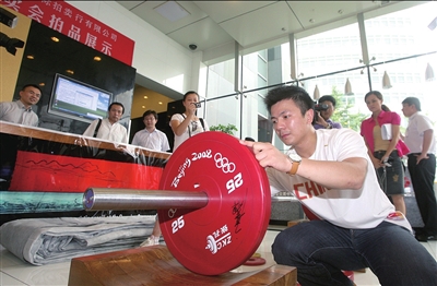 民間奧運(yùn)藏品拍賣爭(zhēng)奪激烈張湘祥奪冠杠鈴拍得7.2萬(wàn)元