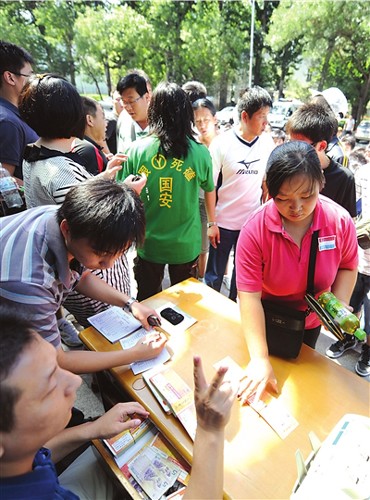 據(jù)球迷王先生介紹,他想要購買的是本月30日國安對陣魯能的比賽門票!瓣P(guān)系到國安今年能否在中超奪冠,作為十幾年的國安球迷,這場比賽我們必須去見證!睘橘I到門票,王先生昨天早上5點就到工體北門守候。當(dāng)時排在他前面的人只有5個,按照當(dāng)天該售票點發(fā)售500張票、每位球迷限買兩張票的情況,他覺得無論如何都能買上票。