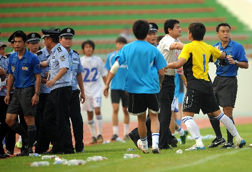 2009年7月26日,全運會男足甲組小組賽最后一輪比賽中,北京隊3-1戰(zhàn)勝天津隊,失敗的天津隊員將怒火撒向當值主裁判何志彪,數(shù)名天津球員狂奔150米追打主裁判何志彪,并有飛踹等瘋狂行為。隨后全運會紀委會取消了天津全運會男子足球甲組代表隊全運會決賽階段比賽和足球項目全運會體育道德風尚獎的評選資格。