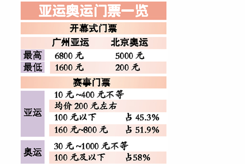 對此,許瑞生說:“比北京奧運會高我想那只是個別座位,低票價、服務(wù)更多大眾是我們的重要目標(biāo)。廣州亞運會大部分門票在10元到200元,這部分是我們主打的!