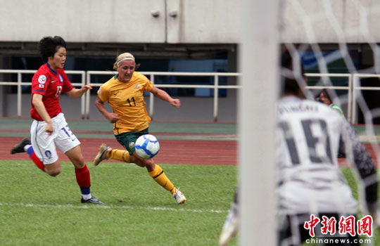 中新網(wǎng)成都5月21日電(記者劉賢 劉忠俊)2010年女足亞洲杯第二輪小組賽21日下午在成都舉行。繼首場2比0勝越南后,澳大利亞今日再以3比1勝韓國,確保小組出線。