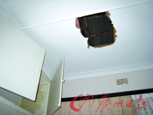記者這次租住的是一處單體公寓,當記者回到公寓時,發(fā)現(xiàn)房間內一片狼藉,衣物和雜物被擲得亂七八糟。這次盜賊采取的手法是記者聞所未聞的,大門、房門、窗戶一切完好,盜賊居然是揭開房頂?shù)姆客撸僭掖┨旎ò,從天而降,是名副其實的“飛天大盜”。最令人咋舌的是,“飛天大盜”居然能夠準確地砸開各個房間的天花板,全部都是從天而降,從天而走。