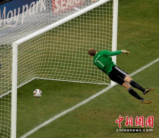本場(chǎng)比賽最大的爭(zhēng)議出現(xiàn)在第38分鐘,蘭帕德遠(yuǎn)射后擊中德國(guó)隊(duì)的橫梁,皮球彈下后過(guò)了球門線,但又被彈到橫梁上,德國(guó)隊(duì)門將諾伊爾將球沒收。但是慢鏡頭顯示,皮球整體已經(jīng)越過(guò)了球門線達(dá)1碼左右。不過(guò),主裁判在征求了邊裁的意見后,宣判此球無(wú)效,比賽繼續(xù)。