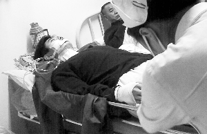 昨晚7時許,經過兩小時的手術,李明被送入監(jiān)護病房。醫(yī)生表示,其頸部、臉部被刀割傷,傷口不深,但都有七八厘米長,分別縫合17針和13針,此外,傷者左手虎口位置還有一處三角形狀的傷口,縫合4針。暫時無法說話,無生命危險。