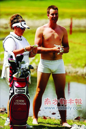 日前,高爾夫WGC-CA錦標賽首輪,瑞典高爾夫名將亨利克·斯滕森脫光衣服救球的“壯舉”無疑是賽場上最吸引眼球的風景。當日在第3洞4桿洞,斯滕森直接將球開進了球道旁的淤泥中,瑞典人一不做二不休,索性脫掉衣服鞋襪,僅剩一條內褲徑直走進泥里,引起場邊觀眾一陣騷動,斯滕森不負眾望,這一洞一舉吞下一個柏忌,最終以69桿排名第17位。