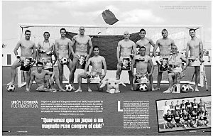 目前西乙FUERTEVENTURA俱樂部的球員們已經(jīng)數(shù)月沒有領(lǐng)到工資,雖然西班牙球員大聯(lián)盟介入了這起勞資糾紛,但是球員們最后得到的回復(fù)是可能兩年后才能領(lǐng)到被欠的薪水。于是,憤怒的球員拍攝了一組裸體圖片,并手持阿布等富商的照片,就是希望某個(gè)阿拉伯王子或者阿布能前來收購俱樂部。