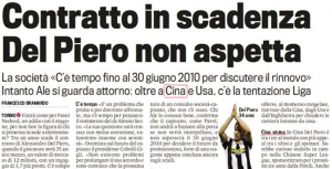 皮耶羅與尤文圖斯的合同到2010年6月30日到期,續(xù)約尤文圖斯固然好,但如果待遇方面不能得到滿足,那么也不排除皮耶羅尋找其他球隊(duì)養(yǎng)老的可能性。據(jù)《米蘭體育報(bào)》所說,包括中國、美國和西班牙的球隊(duì)都嘗試接觸皮耶羅,特別需要指出的是來自中超球隊(duì)的邀請。小新