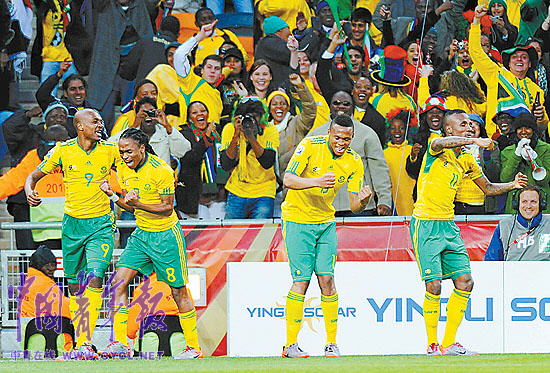 開(kāi)幕式在南非時(shí)間今天下午舉行,但興奮的南非球迷已經(jīng)迫不及待提前慶祝這個(gè)國(guó)家歷史上極為特殊的一天——從前一天晚上開(kāi)始,南非球迷的“瓦瓦祖拉”大喇叭就開(kāi)始在約翰內(nèi)斯堡大街上響個(gè)不停直至深夜。