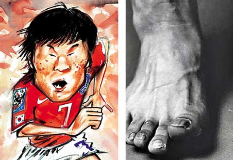 報道中稱,在世界杯韓國隊(duì)同希臘隊(duì)的比賽下半場第7分鐘,樸智星打入了制勝球,而這粒入球,仿佛是韓國足球?qū)θ澜绲男。樸智星朝著觀眾席展開雙臂不停旋轉(zhuǎn),還高聲吶喊,這樣的慶祝動作似乎是在宣布“韓國足球不再局限于亞洲的框架內(nèi)”。樸智星將希臘隊(duì)的兩名高個后衛(wèi)甩在后面,在球場上迅速跑動并洞穿球門時,所有韓國國民的內(nèi)心都激動不已。樸智星是韓國足球的核心人物。在90分鐘的比賽中全程劇烈跑動的樸智星,就像韓國足球的“心臟”,讓韓國足球充滿活力。