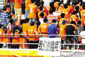 球迷無聲的抗議帶給魯能巨大的壓力,更大的尷尬在比賽結(jié)束后到來。0比0,魯能成為本輪中超惟一一支沒能在主場贏球的球隊(duì),這場平局讓他們把中超榜首位置讓給了北京國安隊(duì)。比賽結(jié)束后,賽場上的球迷出聲了,“下課……”