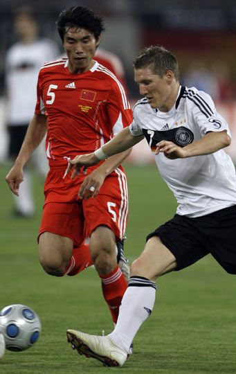 七十五分鐘,中國(guó)隊(duì)中場(chǎng)周海濱一腳遠(yuǎn)射,迫使德國(guó)門(mén)將恩克做出精彩的撲救動(dòng)作。而除了施魏因斯泰格的一次左路突破外,體能下降明顯的德國(guó)隊(duì)幾乎沒(méi)有像樣的進(jìn)攻。終場(chǎng)哨響起,雙方一比一平分秋色。