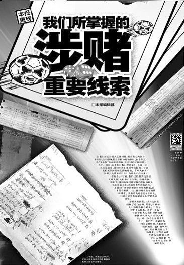 這份線索《遼沈晚報》掌握了3年,為何選擇在此時公諸于眾?對此,郝洪軍說:“3年前,我們3個記者把這份證據(jù)交給了足協(xié),謝亞龍、南勇、楊一民進行了接待。也就在2006年初,足協(xié)與公安部聯(lián)手成立打擊賭球活動辦公室。對我們媒體來說,畢竟不是司法機關,這些線索不能叫證據(jù),交出去(給打擊賭球活動辦公室),是正規(guī)的渠道。但是后來沒有了動靜!