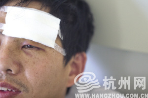 這起事件,最初是一起出租車司機與乘客之間的駕乘糾紛,拳頭最先是打在梁師傅身上。梁師傅名梁珍極,35歲,甘肅人,2003年開始在杭州開出租車,1月17日下午3點左右,梁師傅在文三路載了一男一女兩名乘客,“兩個人都很年輕,個子都很高,蠻瘦的,年紀都在20歲出頭。男的個頭有1米9吧,穿了件灰色的運動服。女的穿了件黑色的衣服,他們上車后,讓我去西城廣場。我就往前開。開到西城廣場那邊一條小路,男的讓我右轉(zhuǎn)彎,那條路上有個禁止右轉(zhuǎn)彎的標志,我說這里不能開的,那個男的嘴上就罵罵咧咧了,聽他們的口音像是東北的。后來,那個男的突然發(fā)怒了,下了車,拉開我的車門,把我拖出來就打,邊上很多人看到了,幫我報警,那個女的拉著那個男的,說不要打了,就打算走。我說你們不能就這么走了。這時候那個女的就在我的手里塞了100塊錢,讓我去醫(yī)院。我說這點錢哪夠上醫(yī)院的?”