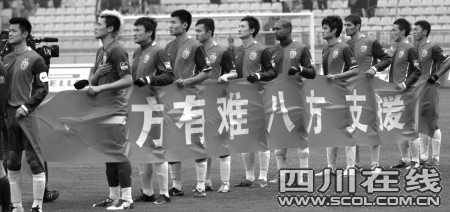 2:1的勝利結(jié)束之后,連續(xù)兩 場進(jìn)球的成足隊(duì)長李鋼說,“希望災(zāi)區(qū)的人們像我們今天比賽一樣,無論遇到什么樣的困難,只要我們團(tuán)結(jié)一心,只要我們選擇堅(jiān)強(qiáng),我們都能獲得最終勝利!”比賽結(jié)束之后,球迷散去的人群中還有纏著綠絲帶的志愿者球迷在募捐,“球賽盡管結(jié)束了,可是我們還想為災(zāi)區(qū)再多做一點(diǎn)事情,我們做得越多,他們受到的苦難就會(huì)越少!