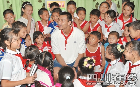 早上7點(diǎn)半,一臉倦意的易建聯(lián)從達(dá)州準(zhǔn)時(shí)坐上了開往宣漢縣的大巴。經(jīng)過兩個(gè)小時(shí)的顛簸,易建聯(lián)一行來到了宣漢縣希望小學(xué),這所學(xué)校對(duì)于本次“希望工程20年·易建聯(lián)愛心四川行”的活動(dòng)有著特殊的意義——這是全國(guó)第二所、四川省第一所希望小學(xué)。