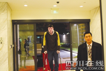 按計劃班機在晚上6點55分抵達,不過飛機誤點了將近半小時,7點20分左右,姚明與葉莉一前一后出現(xiàn)在了機場特地為他安排的貴賓通道。姚明穿著一件咖啡色帽衫,他的左腳還穿著特制的護靴,并仍需拄著雙拐行走,臉上有些疲憊,而葉莉則穿著一件藍色外套,神情要輕松了許多。此前的半年時間,姚明一直在養(yǎng)傷,不久前開始了每天在跑步機上走路的訓練,為的就是這次回國的奔波不會影響自己的恢復,昨天在機場姚明接受采訪時說:“醫(yī)生已經(jīng)可以允許我長途飛行了,現(xiàn)在恢復得不錯,但不能掉以輕心,畢竟是第二次在同一個地方受傷。”
