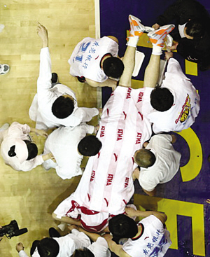 此時場邊突然沖出一名穿著黑色衣服的人員,憤怒地一拳打向查爾斯。但此人很快就被死死抱住,新疆隊(duì)的球員也圍了過來,和廣東球員互有推搡,被抱住的查爾斯怒氣未消,想找杜鋒和那位想襲擊他的人予以還擊。裁判分開雙方球員,場上砸下許多雜物,更有侮辱性的語言贈與查爾斯。在槍林彈雨中,查爾斯被新疆隊(duì)的球員和部分警衛(wèi)簇?fù)碇x開球場。球場十分混亂。