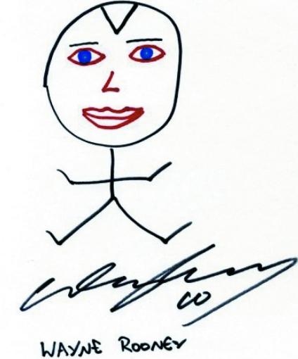 得益于此本畫冊(cè),我們見(jiàn)識(shí)到了心目中的球星們?cè)诰G茵場(chǎng)上無(wú)法看到的另一面,在藝術(shù)的畫筆之下,他們?yōu)樽约汗蠢粘龅木條簡(jiǎn)單而富有情趣。更為惡搞的是,《每日郵報(bào)》還邀請(qǐng)了英國(guó)筆相家解讀球員們自畫像所蘊(yùn)含的心理涵義。著名的筆相學(xué)家艾瑪·巴琦對(duì)魯尼的作品給出了很高的評(píng)價(jià):“我真沒(méi)想到像他這樣的超級(jí)巨星也能畫出畢加索式的肖像,從他的畫中我們都能看到一個(gè)很大的頭,大眼睛和后退的發(fā)際線,頭大身簡(jiǎn)的構(gòu)圖非常藝術(shù)。有意思的是,魯尼用藍(lán)色的畫筆畫自己的眼睛,紅色的畫自己的嘴巴,紅色的嘴巴則暗示著他崇尚著感官享受。”她的這番分析吸引了現(xiàn)場(chǎng)工作人員的竊竊私語(yǔ):“天吶!他是瘋狂的縱欲者,可憐的科琳……”