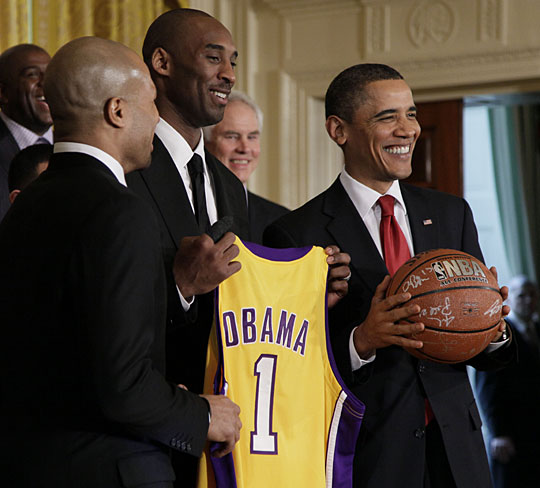 在去年的總決賽里,湖人擊敗了魔術(shù)拿到了球隊(duì)隊(duì)史第15個(gè)總冠軍。對(duì)此奧巴馬表示他看到了場(chǎng)上湖人隊(duì)的表現(xiàn)感到無比高興,而在去年沒有誰(shuí)能超越湖人隊(duì)的卓越表現(xiàn)。