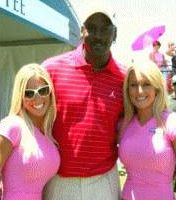 近日,喬丹在一項高爾夫比賽中仍然是“一個人”,不過,他與場邊的兩位身著粉紅套裝的金發(fā)大波美眉打得火熱,美國八卦媒體報導(dǎo)時還聲稱,喬丹是與這兩位大胸艷女一起離開,并在文章中感嘆:喬丹永遠(yuǎn)都是偉大的。