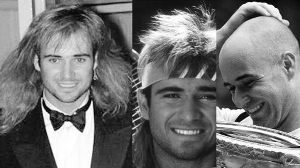 阿加西在自傳中稱,他在自己所打入的第一個(gè)大滿貫決賽,即1990年法網(wǎng)男單決賽,就是戴著這頭飄逸金色假發(fā)登場的。而他在決賽前一天祈禱的竟是假發(fā)不要掉下來,而不是決賽贏球。當(dāng)時(shí)洗浴之后,阿加西突然發(fā)現(xiàn)假發(fā)出現(xiàn)了破裂跡象,“或許是我用錯(cuò)了洗頭液!斌@慌之下,阿加西馬上叫哥哥菲利幫助自己用別針將假發(fā)固定住,以便在比賽中不會(huì)因?yàn)轭^發(fā)突然甩落而成為全世界的笑柄。當(dāng)然,對(duì)于這個(gè)問題過于操心,也直接導(dǎo)致了他在第二天的決賽中輸給了戈麥茲。至于為什么戴假發(fā),阿加西稱是為了掩蓋少年脫發(fā)的尷尬,1999年重返世界第一之后,阿加西的頭發(fā)就越來越少,而到了2006年退役時(shí),他已經(jīng)是一個(gè)完全的光頭先生了。邱季