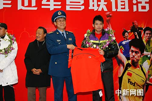 而身為軍人的林丹的開場白則是“回家的感覺真好!”,“超級丹”表示,“雖然身為軍人,但是回軍營的時間卻并不多。今天非常高興來到軍營,這身軍裝也提醒著我的職責(zé),要不斷取得好成績來不辜負(fù)這一身軍裝。”活動中,林丹和王儀涵將一套中國羽毛球隊專用的李寧羽毛球裝備親手送給駐軍將士。