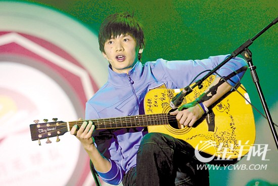 相比那些那富有節(jié)奏的律動(dòng),鮑春來選擇了安靜的自彈自唱。對木吉他彈奏有一定修為的小鮑一改去年的快樂形象,偕同師弟文凱登臺(tái),情深款款地將《春天花會(huì)開》演繹得完美無瑕,引來臺(tái)下粉絲們的尖叫和掌聲。