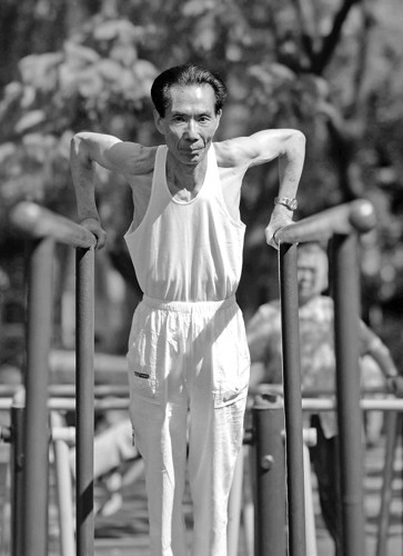 就在記者眼前,於大伯輕松一躍,雙手已經(jīng)撐在了雙扛上,雙手臂呈標準的90度角,接著雙臂放松再撐起,1個、2個、3個……眾人和記者一起數(shù)著,一直數(shù)到15個,於大伯才輕松下杠。 “你們沒到時已經(jīng)做了三四十個,這幾個算展示,做40個沒問題。”於大伯說,據(jù)他所知,杭州60歲以上能做這么多的好像還沒碰到過,和一氣呵成能做80個俯臥撐一樣,於大伯希望有人來和他比試比試、交流交流!