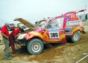 至本報(bào)昨天截稿時(shí),中國車手除趙永國退賽外,只有金城摩托車隊(duì)的蘇文敏完成了第七賽段的艱苦比賽。而后續(xù)的情況是,汽車組威麟車隊(duì)的老將盧寧軍以10小時(shí)1分第32個(gè)完賽,成為當(dāng)天汽車組中國車手中唯一沒有被罰時(shí)的人。其余3位車手因?yàn)樵诮M委會(huì)關(guān)門時(shí)間之后才返回,均被罰12小時(shí)。在不計(jì)被罰時(shí)間的情況下,長城車隊(duì)的周勇成績是15小時(shí)08分45秒,列賽段第44。老盧的隊(duì)友江耀桓用了16小時(shí)38分11秒,賽段成績第57。興業(yè)銀行酷車時(shí)代的朱金忠用時(shí)16小時(shí)47分30秒,成績列第58位。