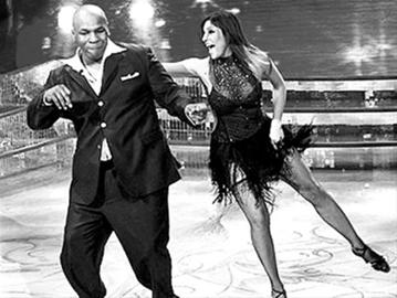 音樂響起,泰森便搖擺出場。不得不說,拳王在一個陌生的領(lǐng)域還是有點(diǎn)緊張,整個跳舞的過程,他緊閉著嘴唇,有人形容他像是要跟霍利菲爾德打拳擊賽。舞伴伊琳娜·康妮格里奧不僅是位辣妹,更是有專業(yè)精神、表現(xiàn)經(jīng)驗(yàn)豐富的舞蹈老師。她沒讓泰森做任何高難度動作,只要注意兩人變換位置的互動。