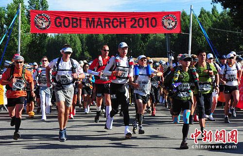 在這一周內,參賽選手每日僅被配給一定量飲用水和露營帳篷,而他們要自己背負所有的食物和裝備徒步穿越山地丘陵,戈壁荒灘,高山峻嶺和沙山草地。本次“戈壁長征”大賽參賽者中包括92名運動員,其中,女性占19%,運動員中年齡最小的23歲,最大的已66歲。