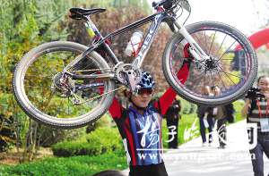 第十一屆全運會女子山地車越野賽昨天上午在山東濟南植物園舉行,最終,在北京奧運會上獲得第五名的江蘇選手任成遠以1小時45分14秒的成績毫無懸念地獲得冠軍,云南選手史慶蘭和另一名江蘇選手劉穎分獲二三名。值得一提的是,比賽中任成遠遇到了“重重困難”,場外竟然有人用起子戳輪胎,用樹枝卡車輪。