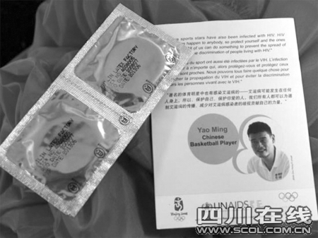 “奧運(yùn)收藏第一人”趙曉凱在南京展示了這款特殊的奧運(yùn)村避孕套,和普通款不同,這款避孕套不僅有英法文的介紹,還有舞動北京中國印的標(biāo)志,更加獨(dú)特的是,外包裝上還有抗艾大使姚明的頭像(圖)。據(jù)悉,北京奧運(yùn)期間,國際奧委會在奧運(yùn)村放置了10萬避孕套預(yù)防艾滋病,姚明作為防艾滋病形象大使,他的肖像被印到了少量的“精裝版奧運(yùn)村避孕套”上,在奧運(yùn)后,這款避孕套成為奧運(yùn)藏家熱追的藏品!皧W運(yùn)收藏第一人”趙曉凱介紹,這是迄今為止他找到的第一款。趙曉凱表示,姚明版避孕套的拍賣所得,將用于救助只有14個月大的南京白血病患兒。(徐楊)
