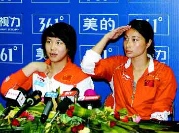 當(dāng)郭晶晶與搭檔王涵拿到女子雙人三米板金牌之后,現(xiàn)場(chǎng)頓時(shí)沸騰了。觀眾為郭晶晶的精彩表演而吶喊,記者則開始在新聞發(fā)布會(huì)通道搶占地盤,幾十位記者猶如“從天而降”一般堵住了前往新聞發(fā)布會(huì)的必經(jīng)通道。在場(chǎng)的武警見勢(shì)不妙,立即開始疏散,這時(shí)一位從場(chǎng)內(nèi)出來的武警向新聞發(fā)布會(huì)通道外的武警喊道,“快,快,擋出一條路,讓她過去!