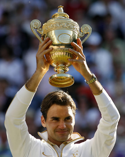 中新網(wǎng)7月6日電 今天凌晨,2009年溫布爾登網(wǎng)球公開賽的壓軸大戲——男單冠軍爭奪戰(zhàn)終于落幕,天王費德勒與羅迪克苦戰(zhàn)四個多小時,最終瑞士人以3比2險勝,五局比分為5比7、7比6、7比6、3比6、16比14,同時費德勒也以15座大滿貫單打冠軍的紀(jì)錄超越桑普拉斯,成為網(wǎng)球史上最偉大的一位冠軍。