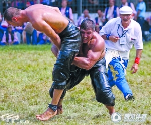 在草地上摔跤?對那些見慣了在一個圓形的場地里進行摔跤比賽的人來說,簡直不可想象,但事實上,這樣的場面在土耳其已經(jīng)持續(xù)了接近650年!