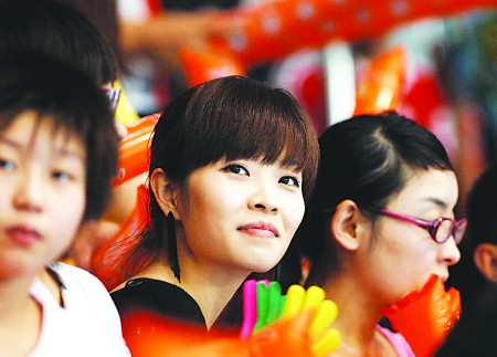 由于現(xiàn)場(chǎng)觀眾實(shí)在是太熱情了,有人中途“劫走”了這束鮮花。這多少讓王丹有些失望。不過(guò),很快有人將亞軍何沖扔上來(lái)的鮮花交到她手中,王丹臉上又露出了笑容。