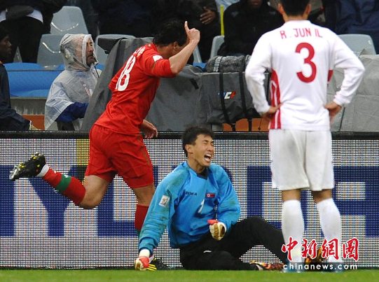經(jīng)歷了首戰(zhàn)的亮相,以神秘面貌示人的朝鮮隊已經(jīng)“見光死”。此輪他們不幸遇到了急于拿分,急于撈凈勝球的葡萄牙隊,朝鮮隊卻出現(xiàn)嚴(yán)重的判斷失誤,過早亮劍,導(dǎo)致劍毀人亡。在久經(jīng)沙場的歐洲勁旅葡萄牙隊的眼中,他們的那三板斧難免已是黔驢技窮。何況,朝鮮隊還要和葡萄牙對攻,班門弄斧,正中了葡萄牙隊的下懷。