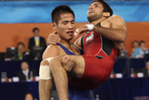 23日,亞運摔跤比賽,中國選手高峰戰(zhàn)勝伊拉克選手獲得銅牌,賽后,高峰將在比賽中受傷的對手抱下場。