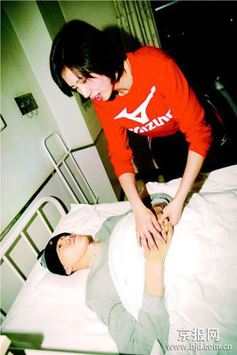 前幾天,周蘇紅從男排國(guó)家隊(duì)把湯淼的一些衣物取回時(shí),偶然看到了湯淼在紙盒上寫(xiě)的字,觸景生情,她哭著說(shuō):“我看到了他親筆寫(xiě)的字,字寫(xiě)得雖然不是很好看,但卻令我很感動(dòng)。自從他受重傷以來(lái),每天我訓(xùn)練完了回到房間,都不知道自己該干什么,一空閑下來(lái),我就控制不住地胡思亂想,為‘錘錘’揪著心(湯淼的小名)。可我也總在想,現(xiàn)在的醫(yī)療水平那么高,他又那么堅(jiān)強(qiáng),還有那么多人關(guān)心他、鼓勵(lì)他,我想湯淼重新站起來(lái)只是時(shí)間問(wèn)題。實(shí)際上錘錘剛受傷的時(shí)候,對(duì)我打擊最大,現(xiàn)在那么困難的時(shí)候我倆都挺過(guò)來(lái)了,現(xiàn)在每天看到他一點(diǎn)點(diǎn)地恢復(fù),我對(duì)他越來(lái)越有信心!